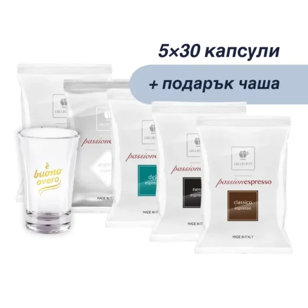 Сетът капсули Nespresso® с петте вкуса на LolloCaffé включва: